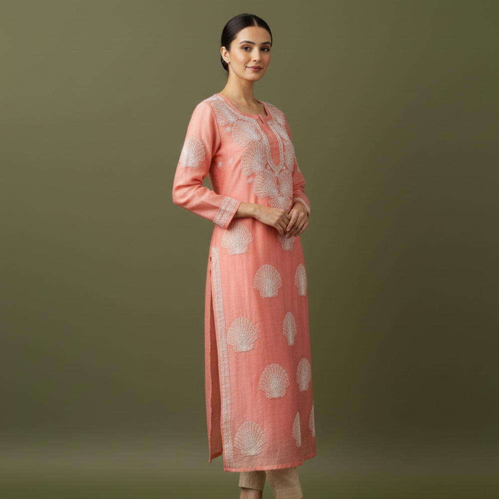 Graceful and timeless, the Orelia Organza Chikankari Kurti is a celebration of delicate craftsmanship and refined elegance. Crafted from lightweight organza fabric, it features a soft sheer texture that lends an airy, sophisticated charm. The kurti is beautifully adorned with intricate hand-done Chikankari embroidery, creating a subtle play of texture and detailing that elevates its overall appeal.